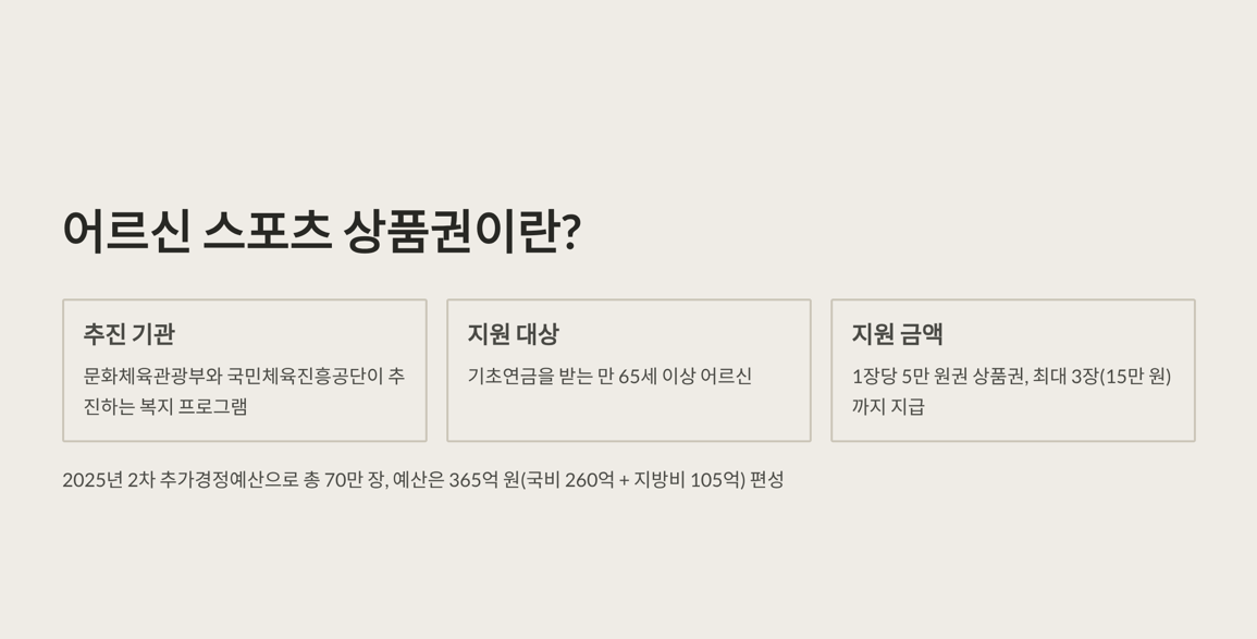 최근 부모님께 수영 강습을 권해드리려 했지만, “시설 이용료가 부담된다”는 말씀을 자주 듣게 되었어요. 그러다가 알게 된 제도! 바로 65세 이상 어르신 스포츠 상품권이었습니다. 기초연금을 받고 계신 분이라면 최대 15만 원 상당을 체육시설 이용권으로 지원받을 수 있다고 해요.