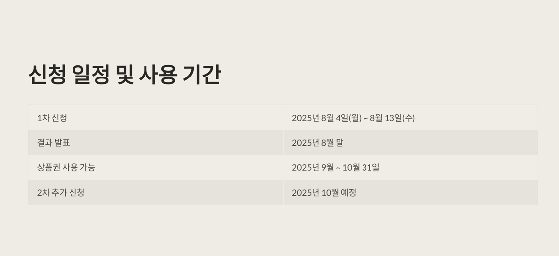 | 1차 신청 | 2025년 8월 4일(월) ~ 8월 13일(수) |