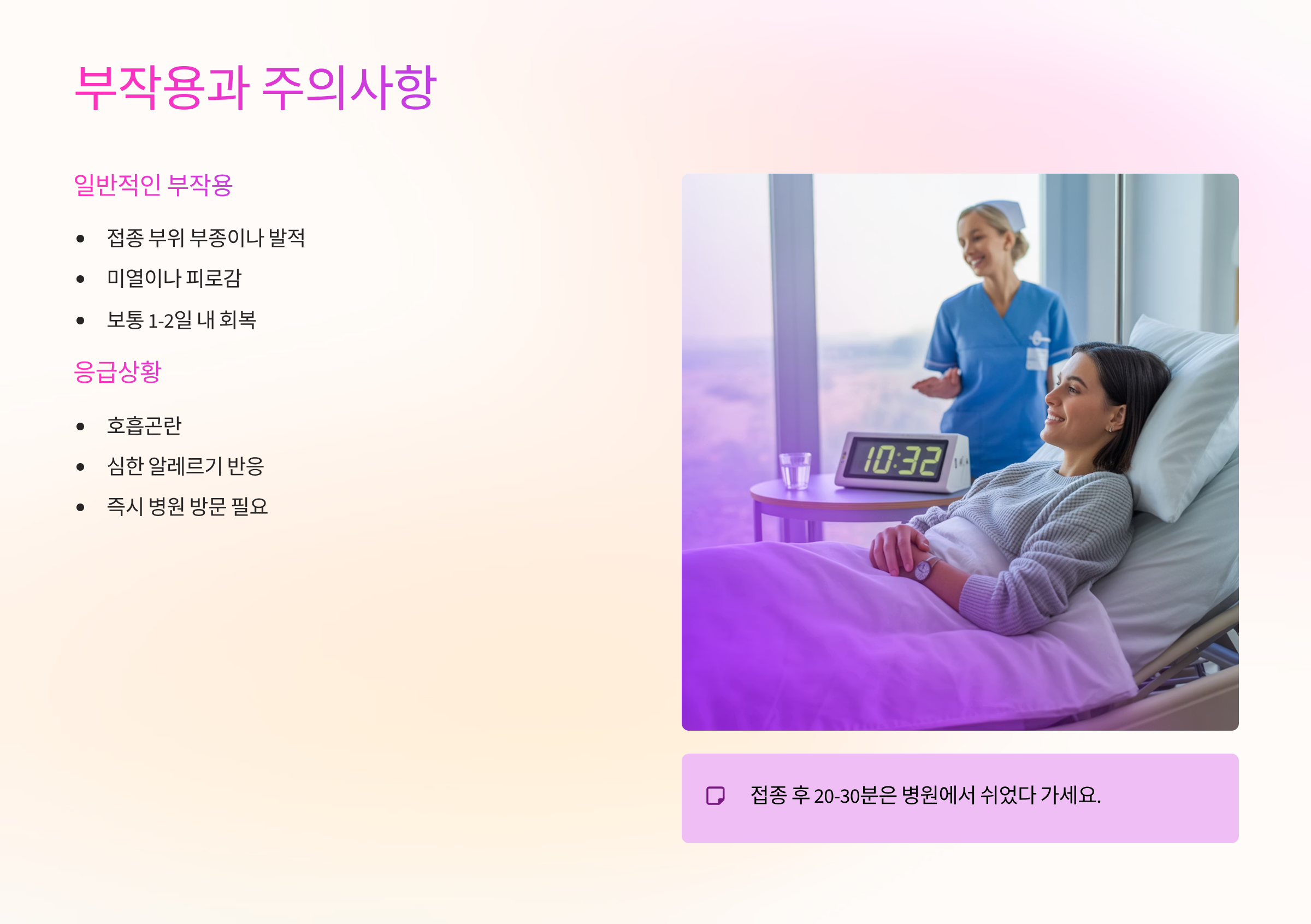접종 후 20~30분은 병원에서 쉬었다 가시는 걸 추천드려요.