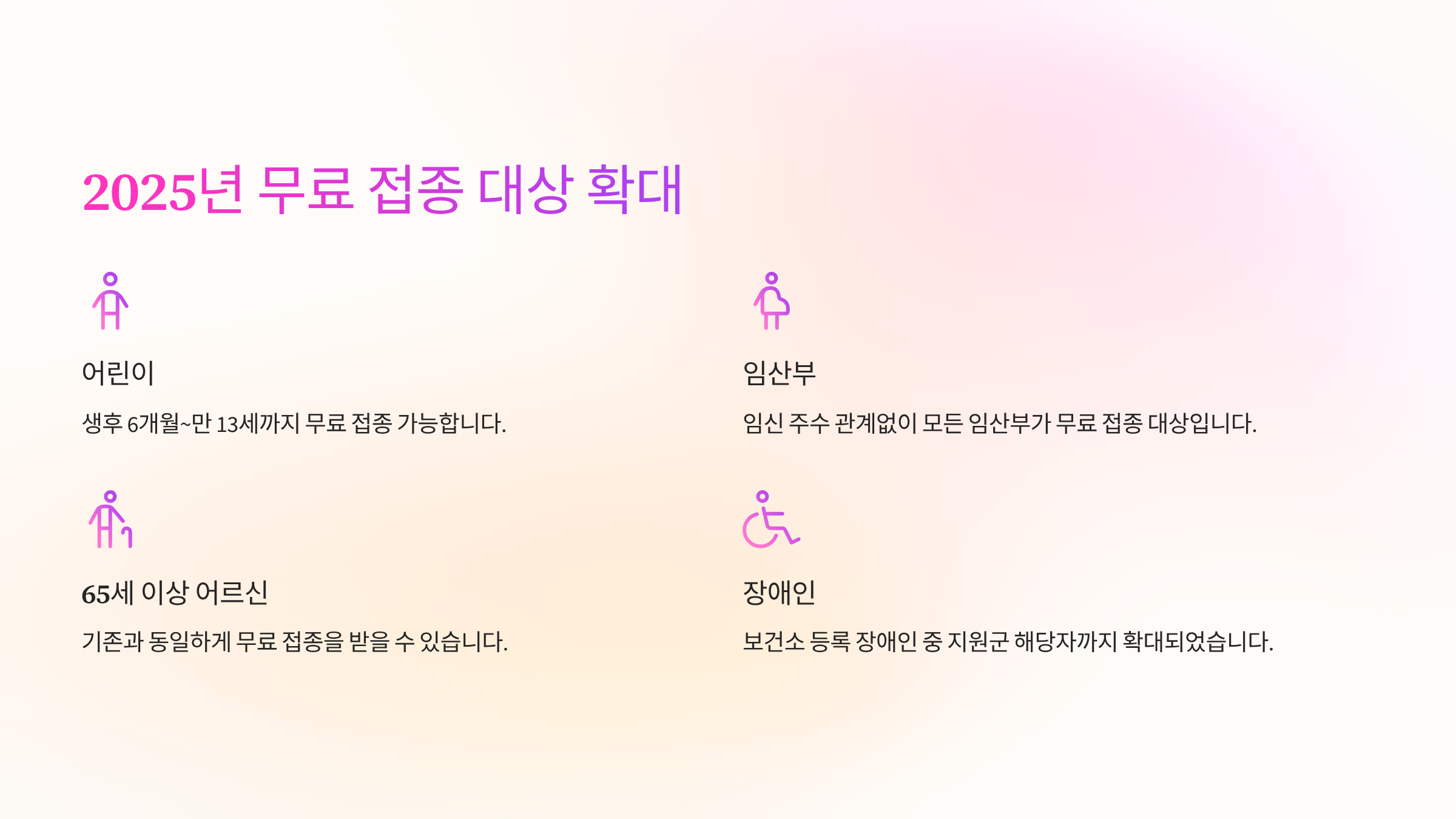 2025년부터는 무료 접종 대상이 더 넓어졌습니다.
