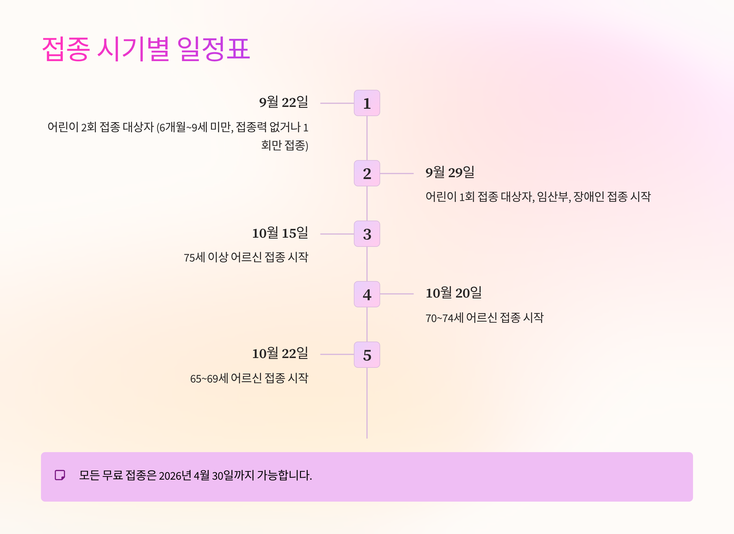 모든 대상자는 2026년 4월 30일까지 접종할 수 있어요.