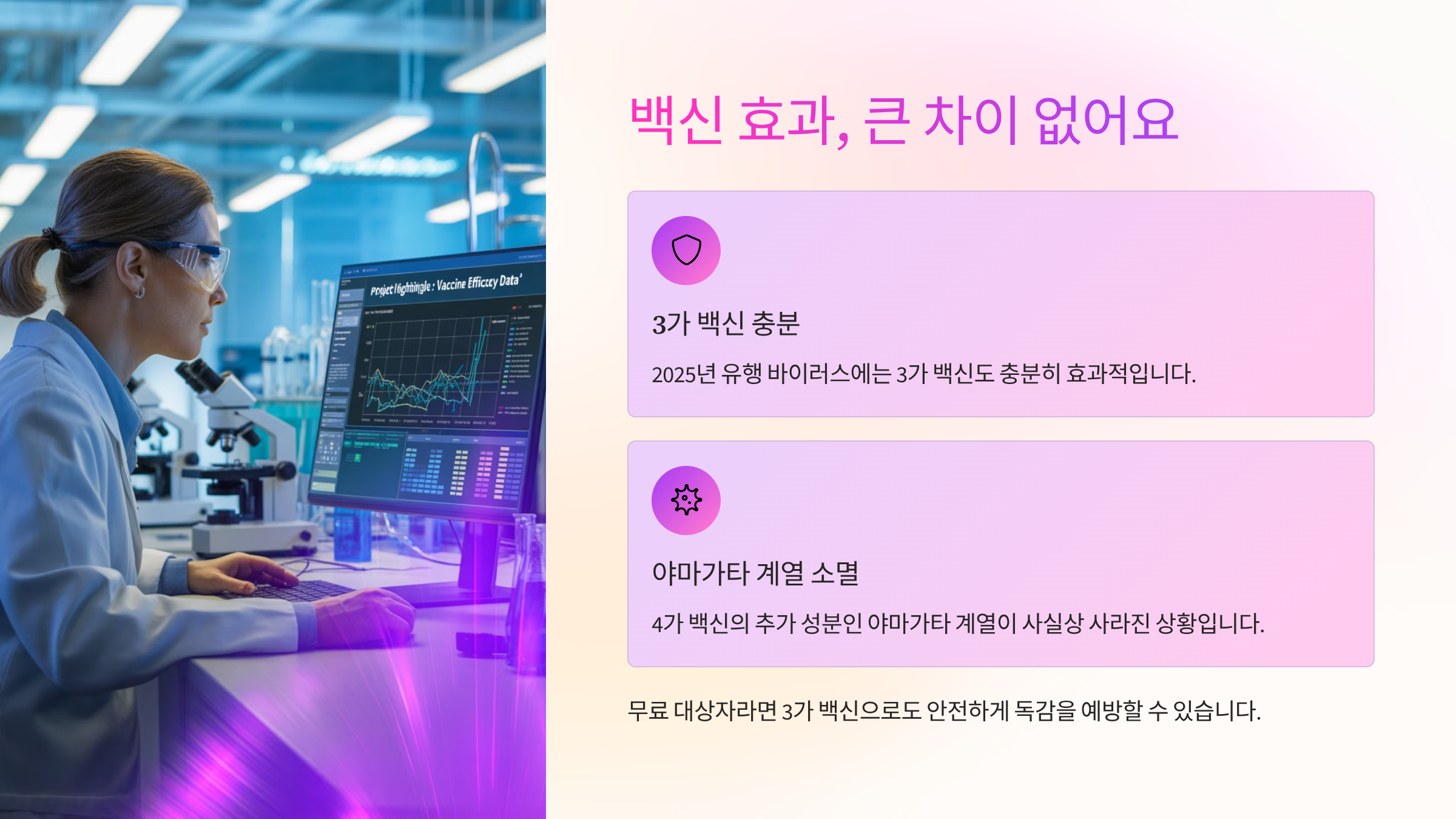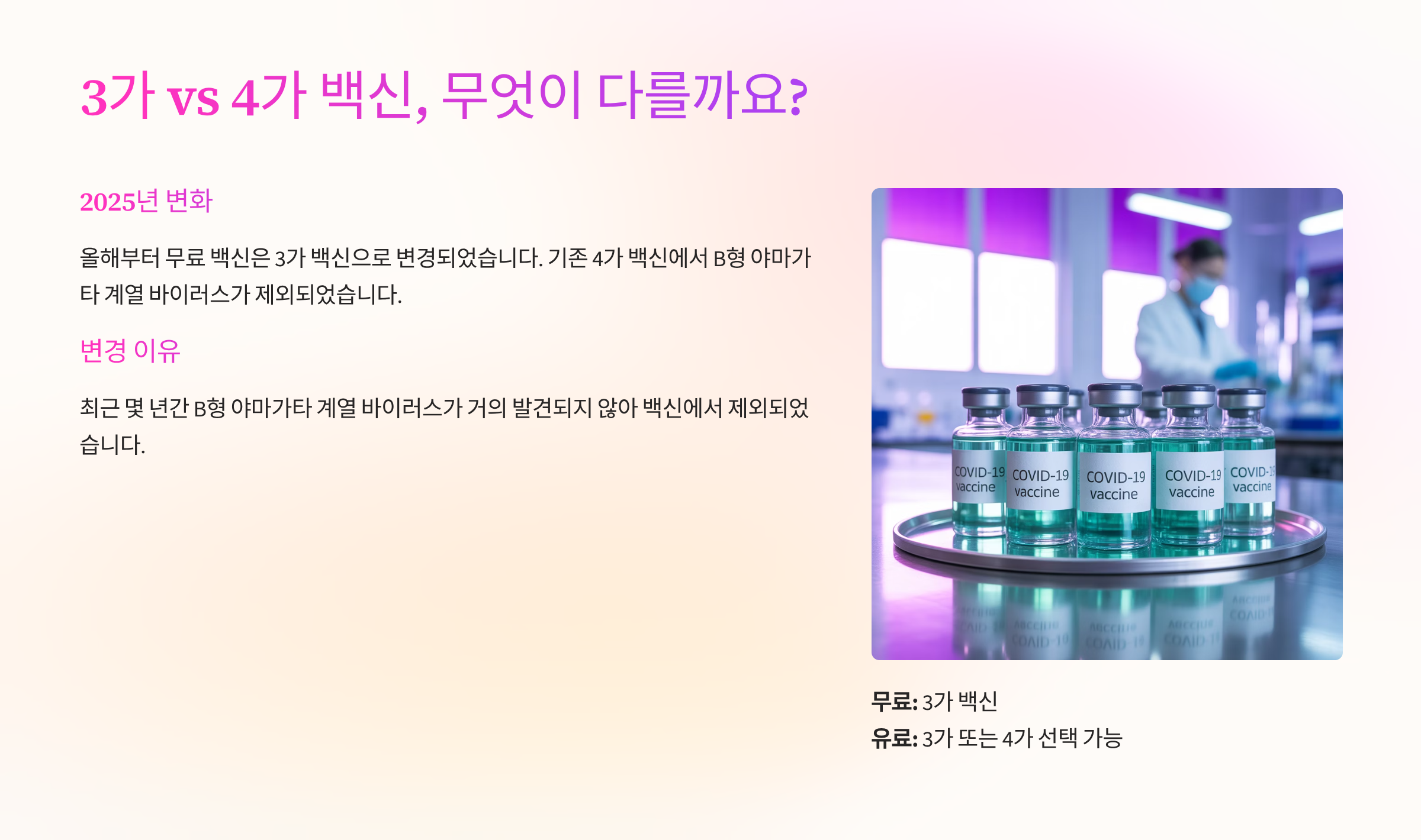 2025년 현재 유행하는 바이러스에는 3가 백신도 충분히 효과적이에요.