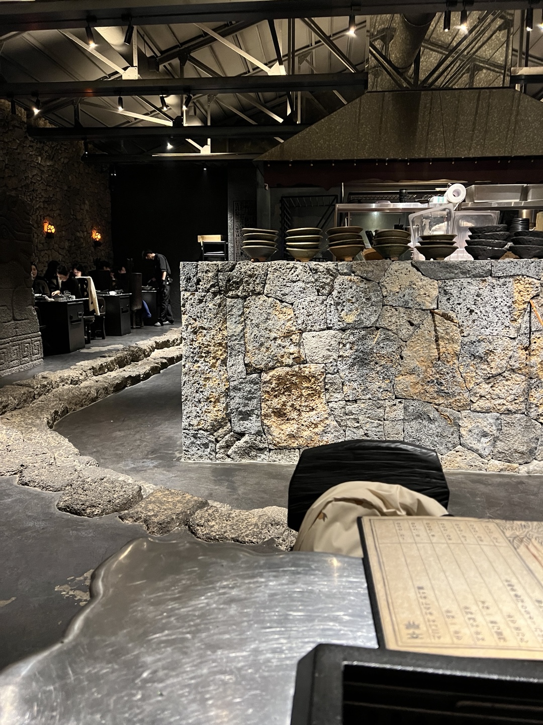 외관은 초록 덩굴이 어우러진 시멘트 건물로, 일반적인 고깃집과는 전혀 다른 세련된 인상을 줍니다. 내부는 현무암 벽과 모던한 조명이 조화를 이루며, 테이블 간 간격이 넓어 프라이빗한 식사가 가능합니다. 은은한 조명과 깔끔한 매장 관리가 돋보여 제주 여행 중 여유로운 식사 시간을 보내기에 좋습니다.