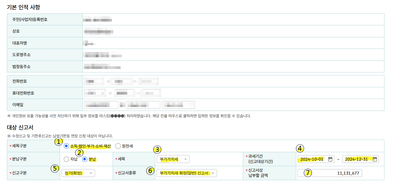 4.과세기간 : 신고대상기간 (2024.10.01-2024.12.31)