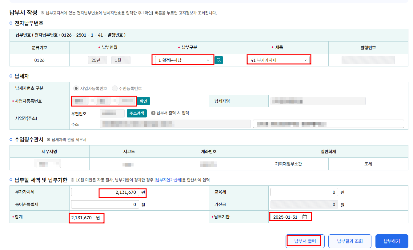저는 1월31일 까지 납부할 금액은 2,131,670원 따로 납부서 만들고 나머지 900만원은 300만원씩 말일까지 납부하는걸로