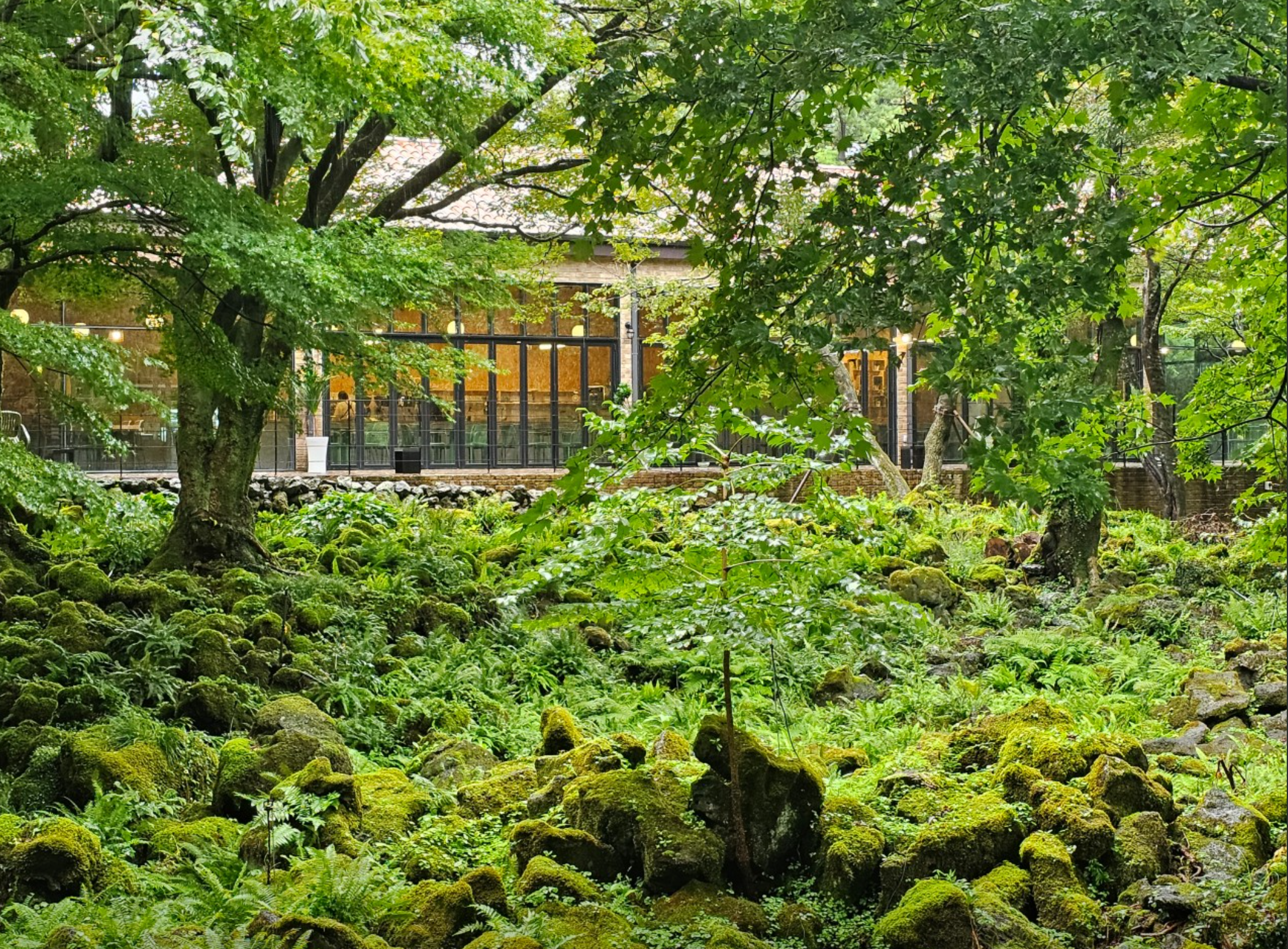 애월 숲속 카페를 찾는다면 이끼숲소길이 제격입니다. 돌담과 나무로 꾸며진 외관은 제주 구옥의 감성을 살렸고, 통유리로 들어오는 빛과 숲 풍경은 마치 한 편의 그림 같아요.