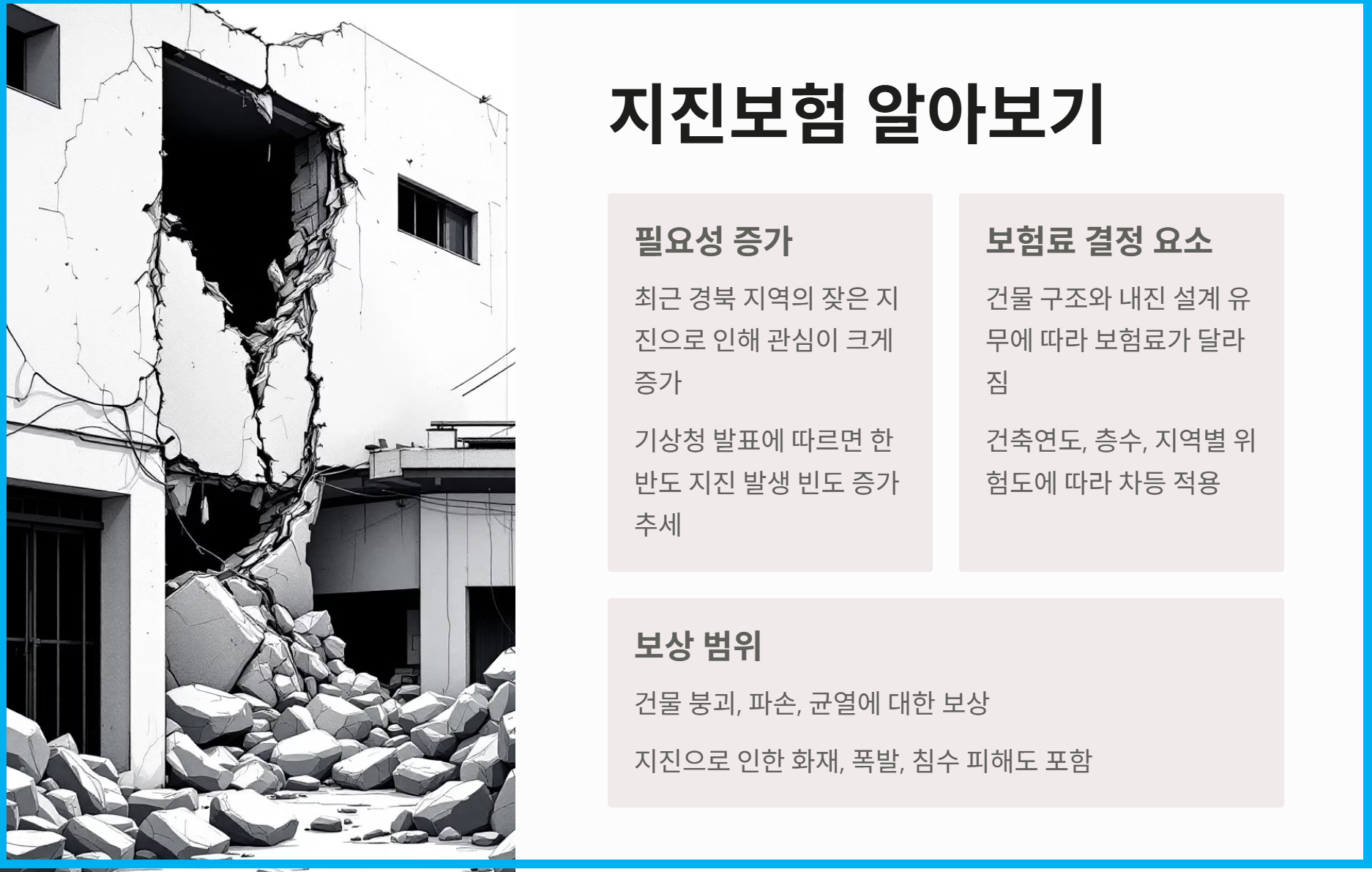 - 지진보험 구조 확인 – 건물 내진 설계 여부 따라 보험료 차이