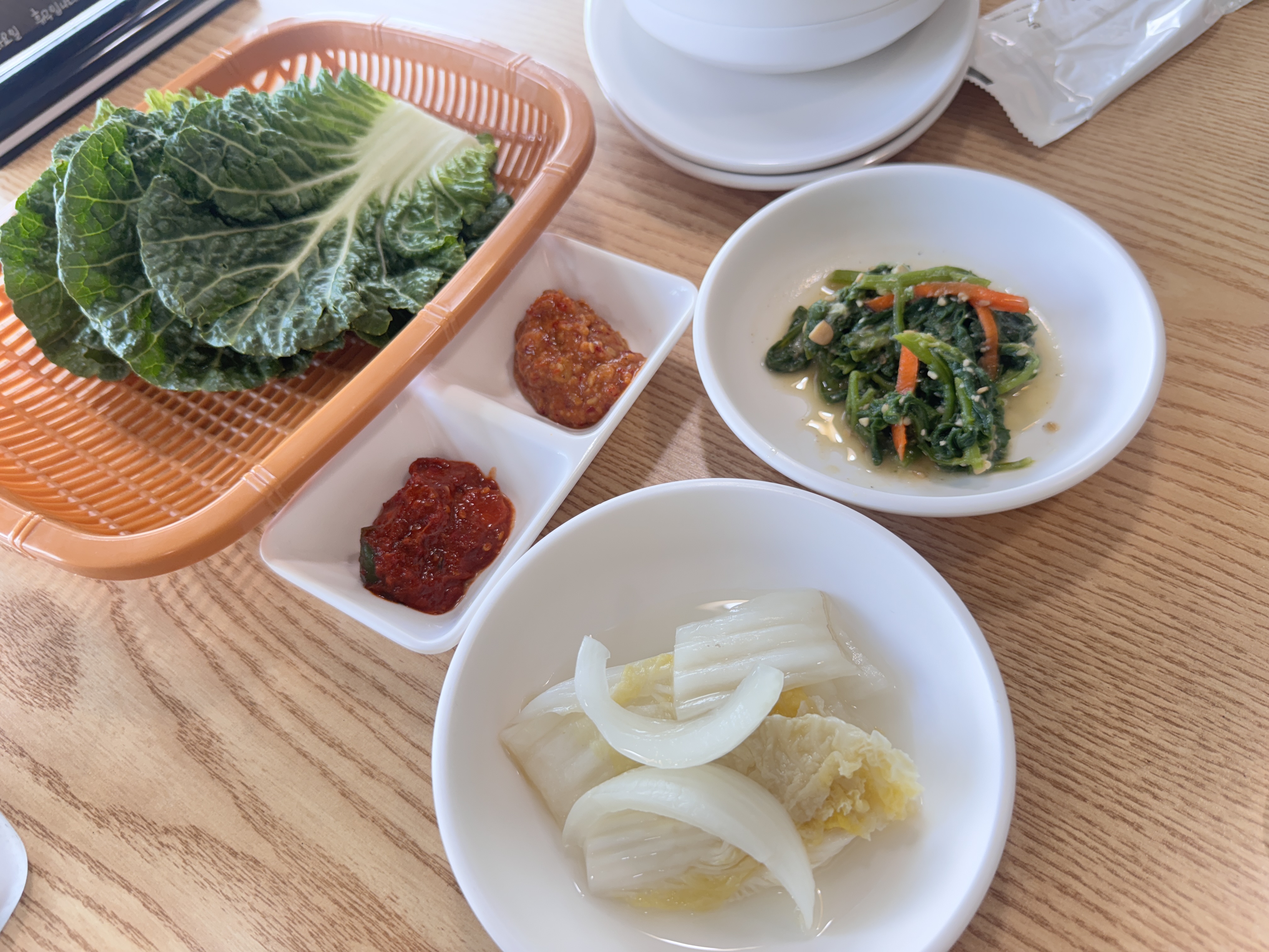 외관은 다소 소박하지만 내부는 깔끔하게 정돈되어 있으며, 자리에 앉자마자 정겨운 밑반찬들이 빠르게 세팅되어 만족스러운 시작을 알립니다.