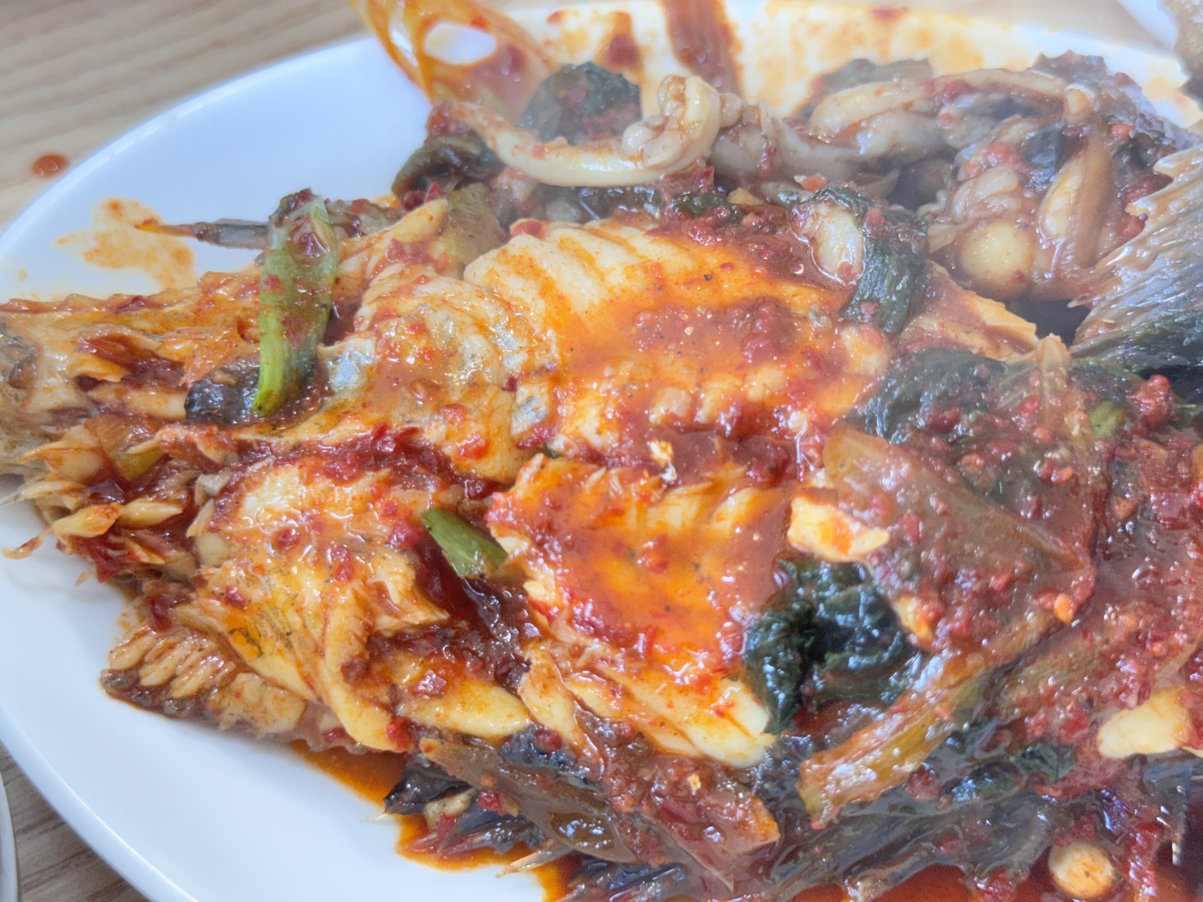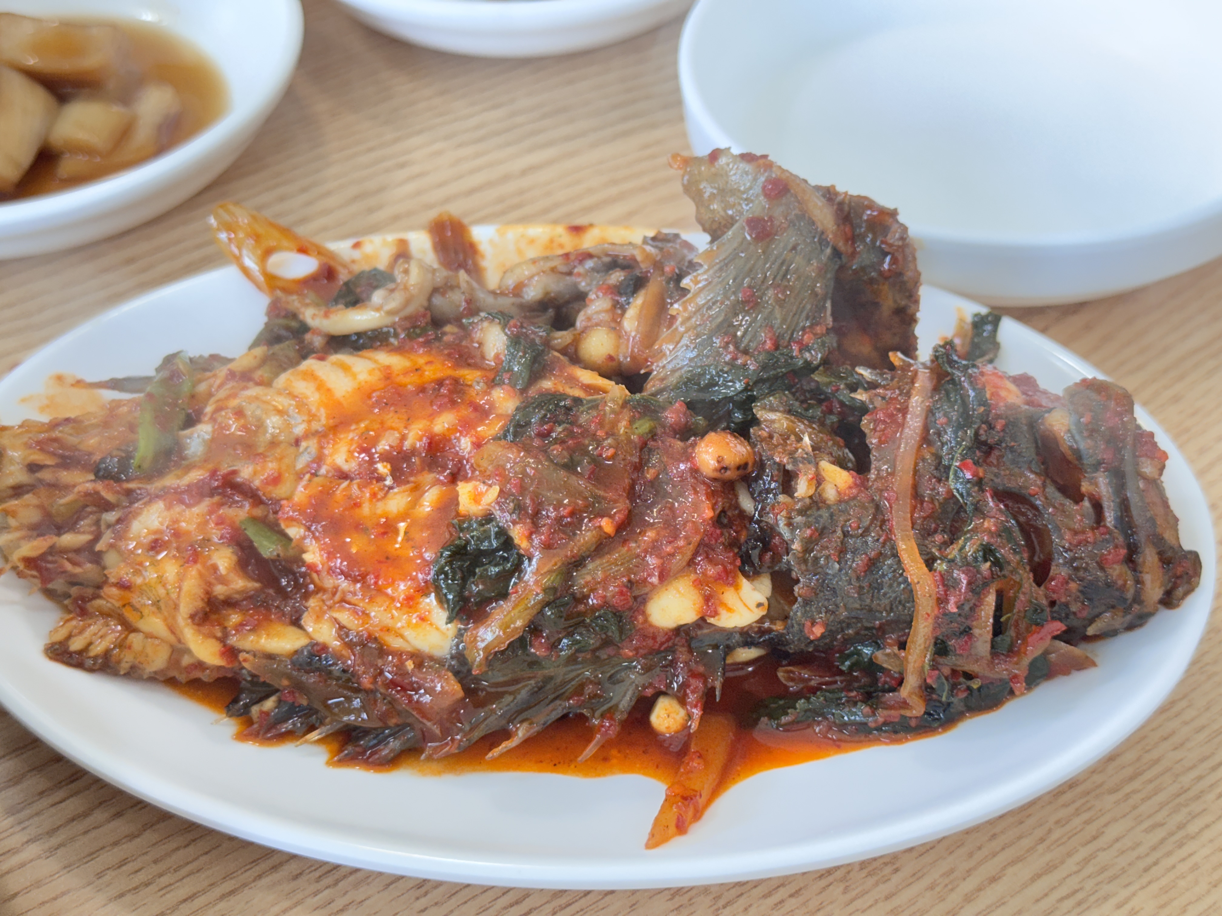 이 식당의 대표 메뉴는 단연 우럭조림입니다. 신선한 우럭을 사용해 비린 맛이 전혀 없고, 무엇보다 양념이 놀라울 정도로 깊고 진합니다. 고추장과 간장이 어우러진 양념이 생선살 속까지 스며들어 있어, 살이 탱글하고 쫄깃한 맛에 감탄하며 한입만 먹어도 밥이 절로 생각납니다.