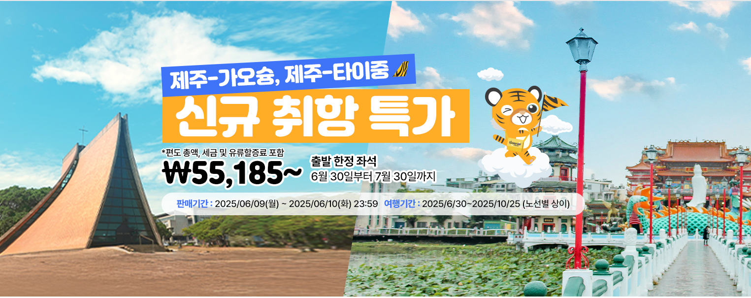 | 제주 → 가오슝 | 약 130,000 ~ 190,000원 | 초기 특가 프로모션 적용 가능성 높음 |