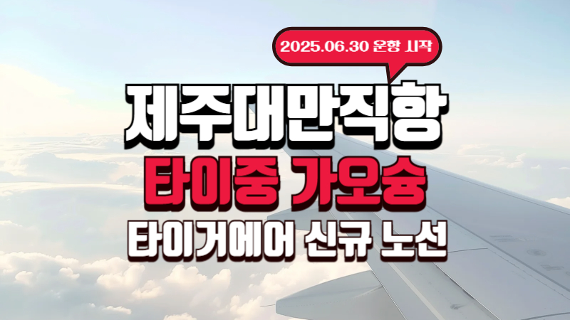 대만의 저비용 항공사 타이거에어 타이완(Tigerair Taiwan)이 2025년 6월 30일부터 제주-타이중 직항 노선을 정기 운항합니다. 해당 노선은 주 2회, 월요일과 토요일에 제주국제공항에서 출발하며, 기존에 환승 없이는 갈 수 없던 타이중으로의 여행이 훨씬 간편해졌습니다.