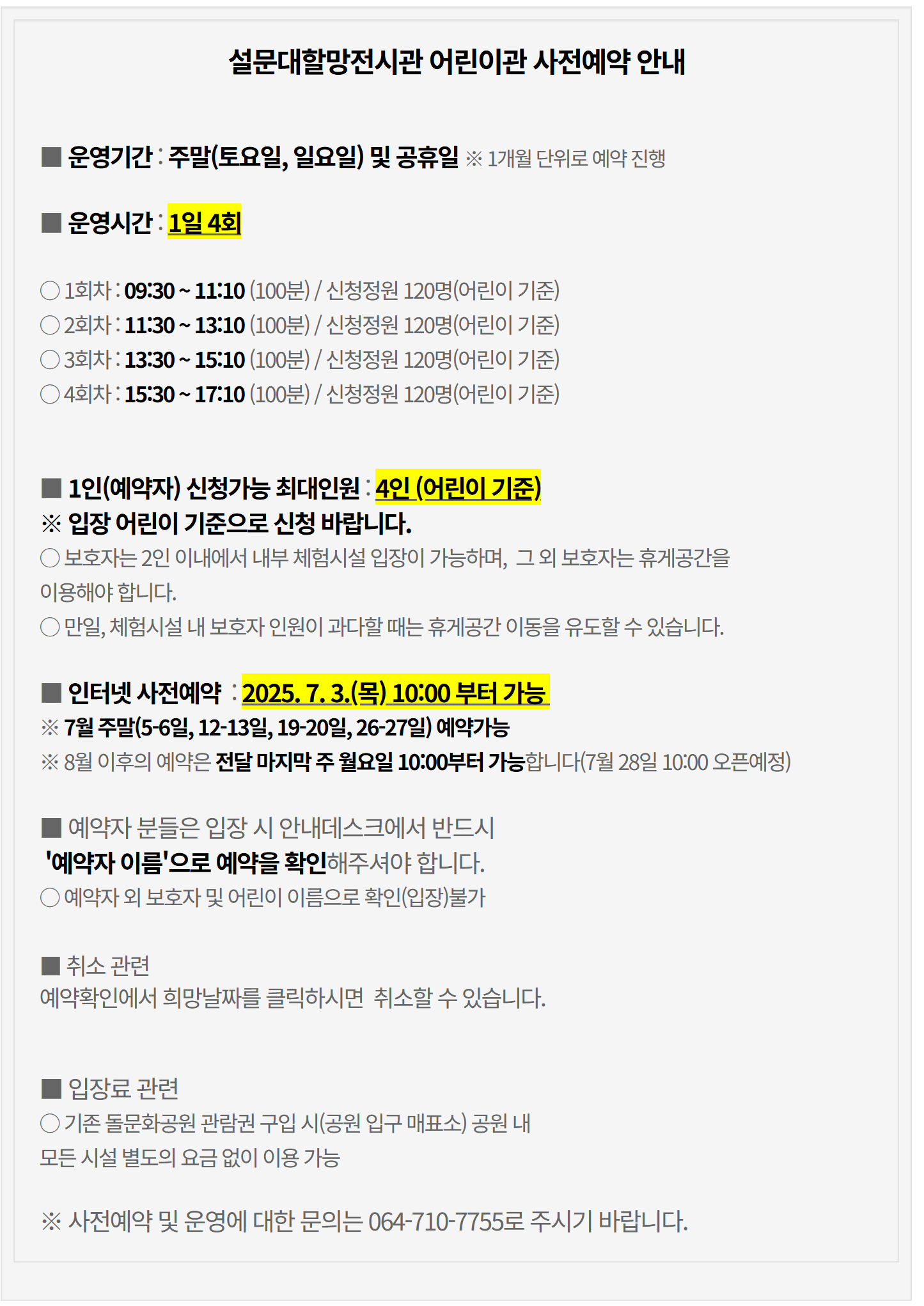 - 1인(예약자)당 최대 신청 가능 인원: 어린이 기준 4명