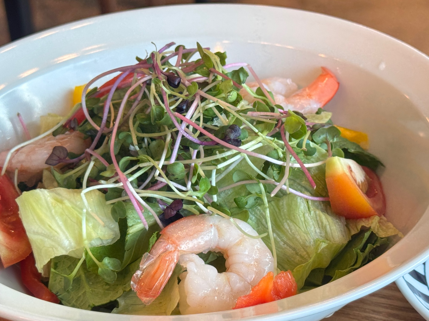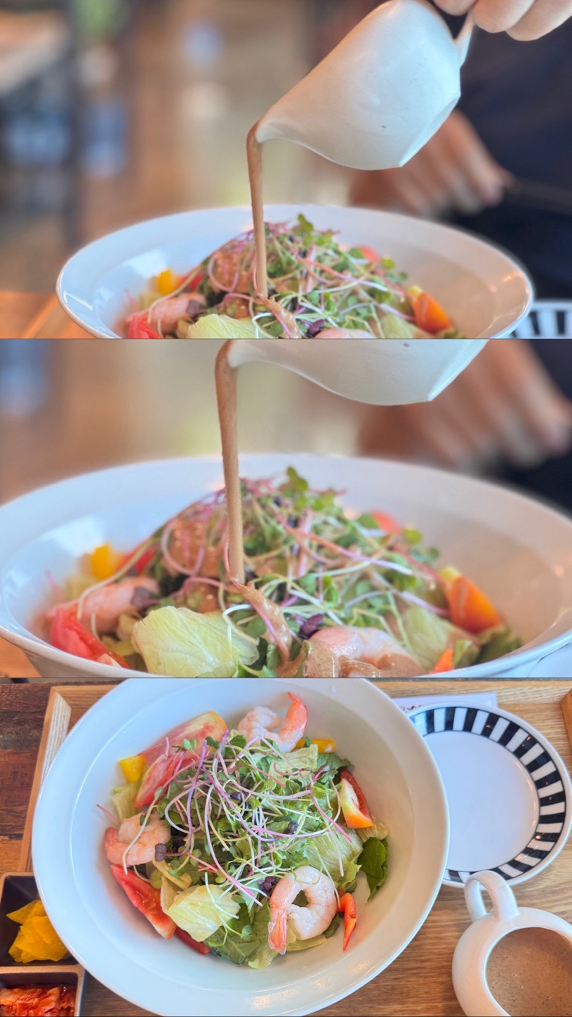 제가 주문한 메뉴 중 하나는 샐러드 우동이었어요. 차갑게 준비된 신선한 채소와 탱탱한 새우, 고소한 참깨소스가 어우러져 입맛을 환하게 살려줍니다.