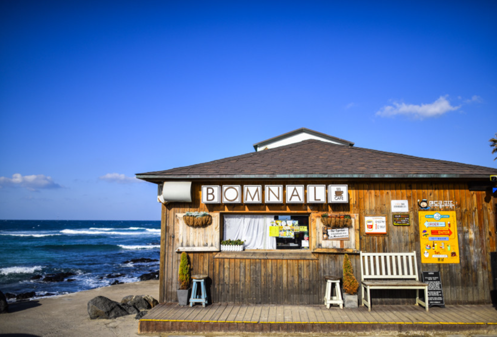 - 봄날카페 – 위치: 애월해안로 2546-4 – 드라마 '맨도롱 또똣' 촬영지, 감성 인테리어