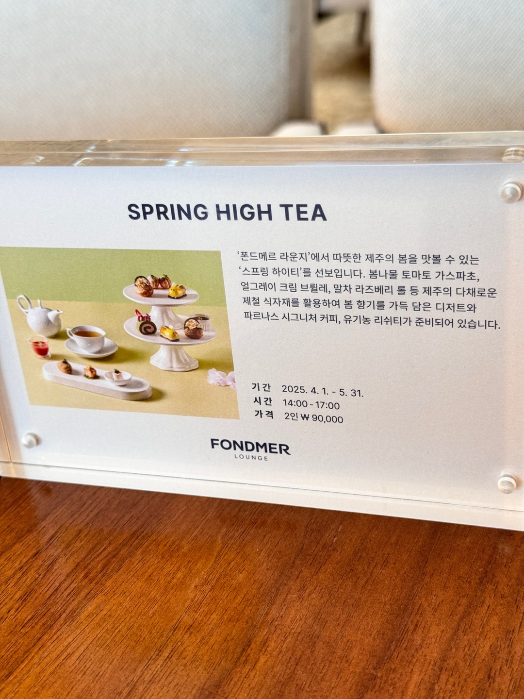 파르나스 호텔 제주 폰드메르 라운지의 메뉴는