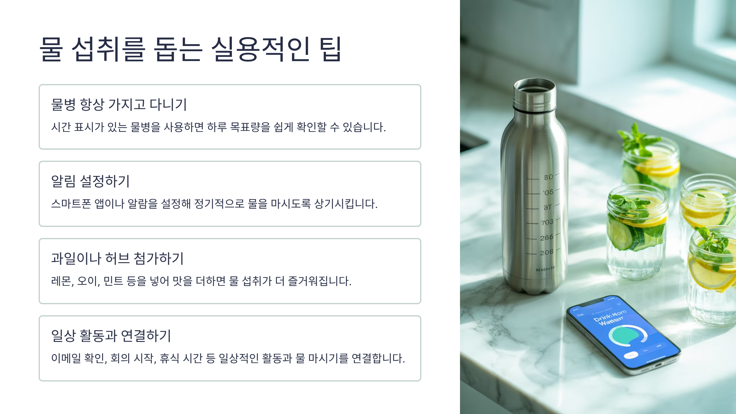 - 공복에 물 한 잔으로 하루 시작하기