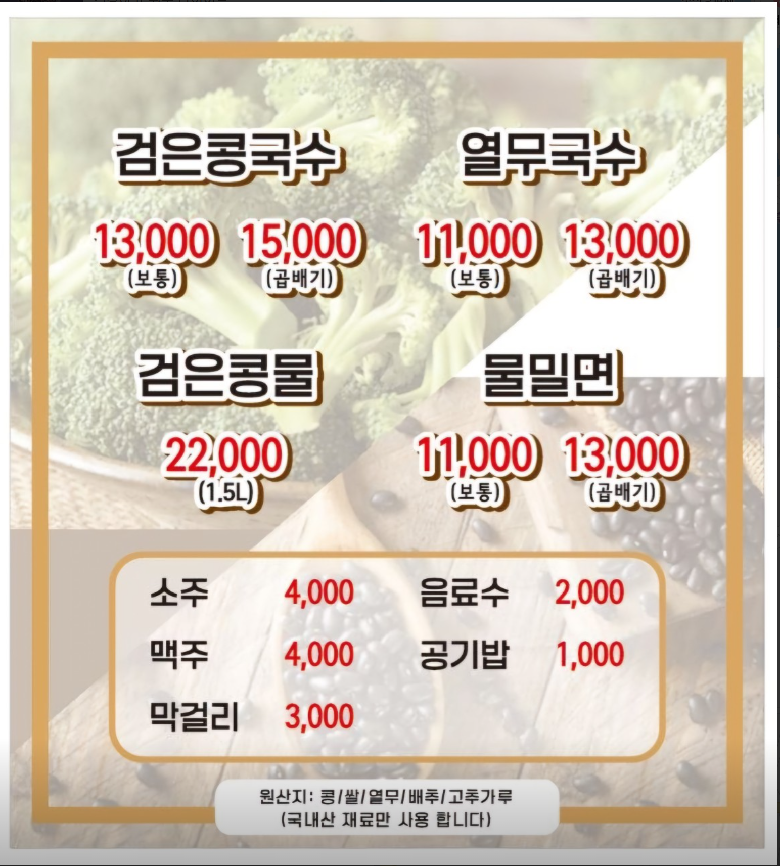 📍 지역: 제주 조천🍜 대표메뉴: 검은콩국수, 열무국수, 검은콩물⏰ 영업시간: 오전 10:30 ~ 오후 3:00 (매주 월요일 휴무)🚗 주차: 전용 주차장 없음 (바로옆 공영주차장 있음) 야외대기의자 있음.