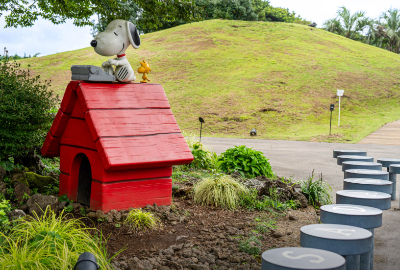 스누피 캐릭터를 테마로 한 정원과 실내 전시 공간. 다양한 포토존과 카페도 있어요.